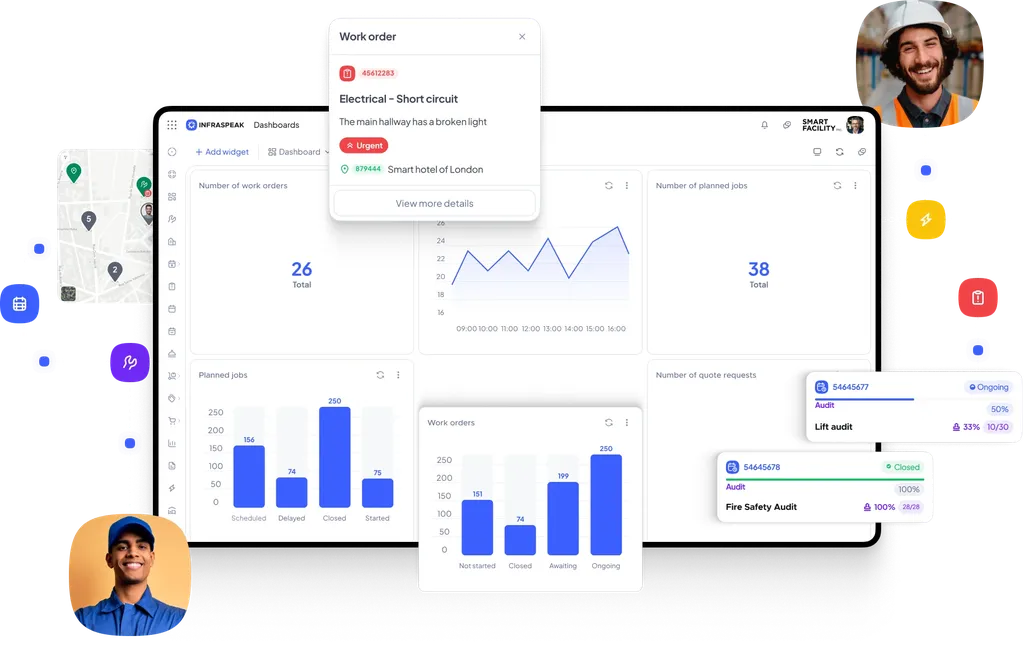 Schedule a demoInfraspeak is a unique facilities management software that connects your entire operation — with end-to-end collaboration, complete visibility, and intelligent automation.