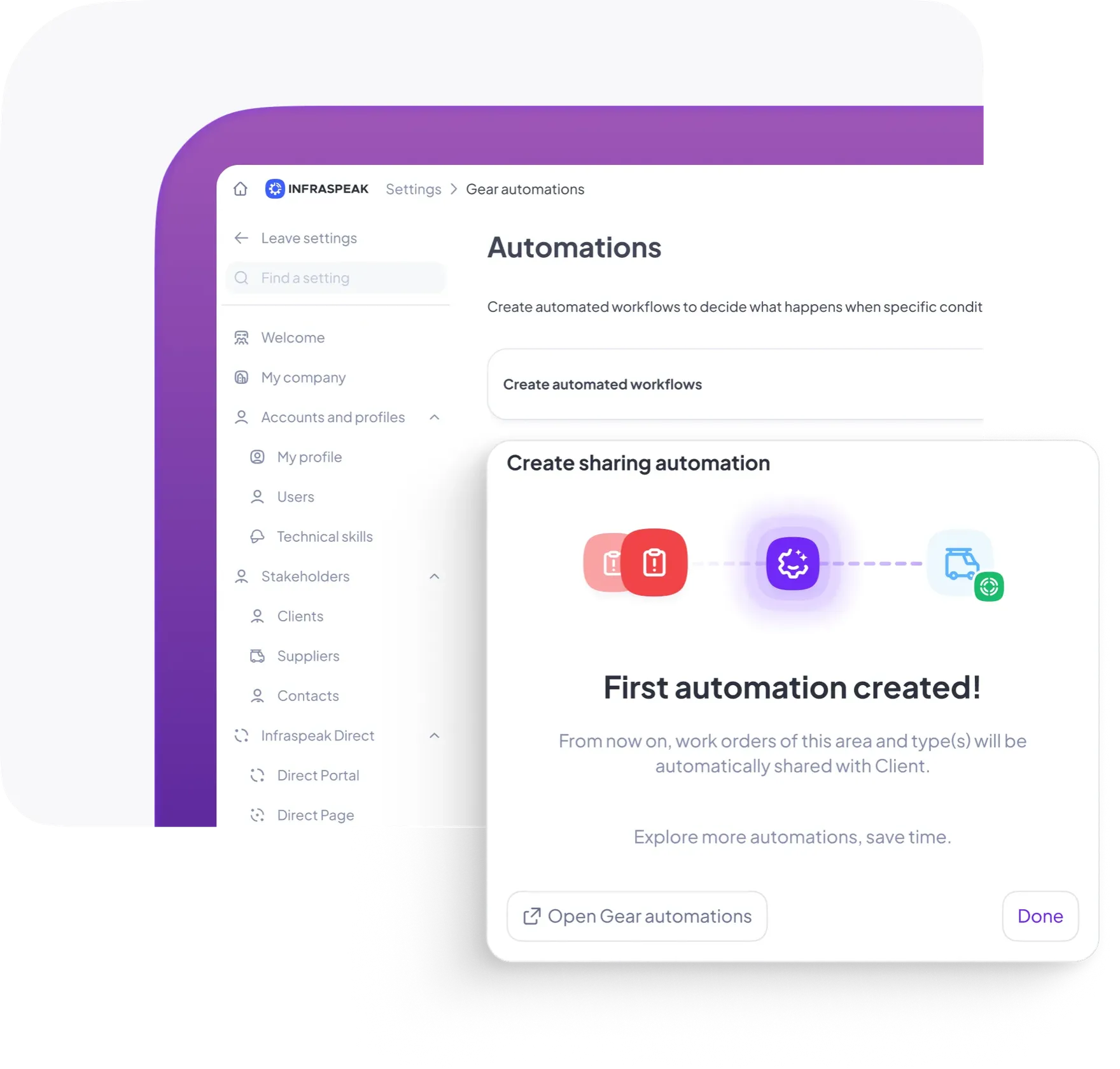 of all admin work can be automated with Infraspeak Gear