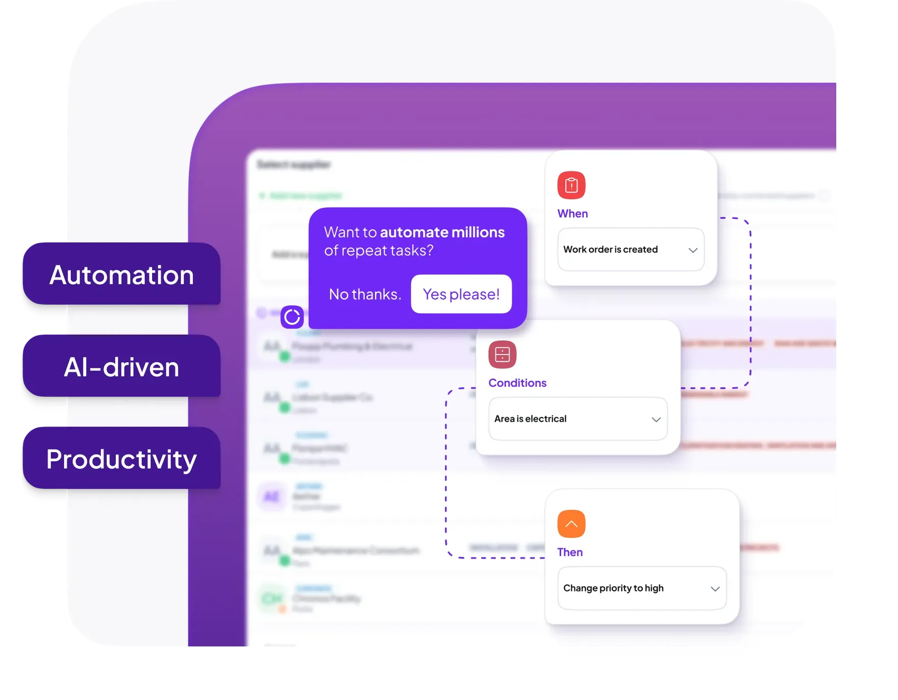 Manage requests, speed up decisions, and keep your teams and spaces running smoothly with intelligent automation.