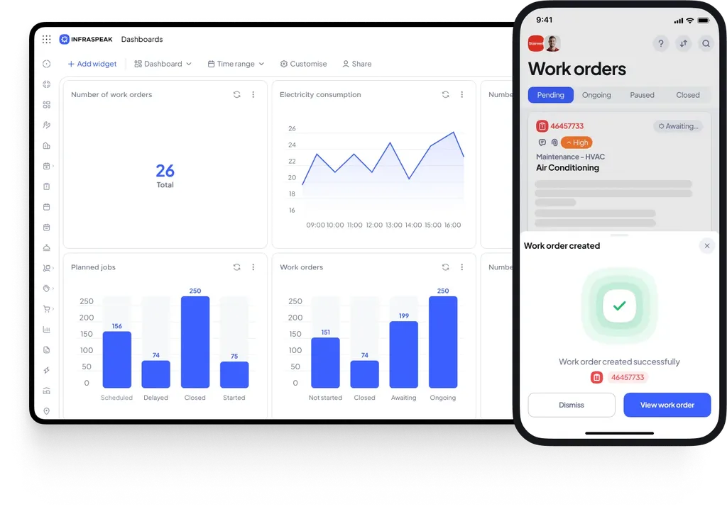 Manage work orders, assign tasks, check execution status, associate assets and costs, and communicate with field teams in real-time — all with an intelligent, collaborative FM platform that integrates with your whole operation.