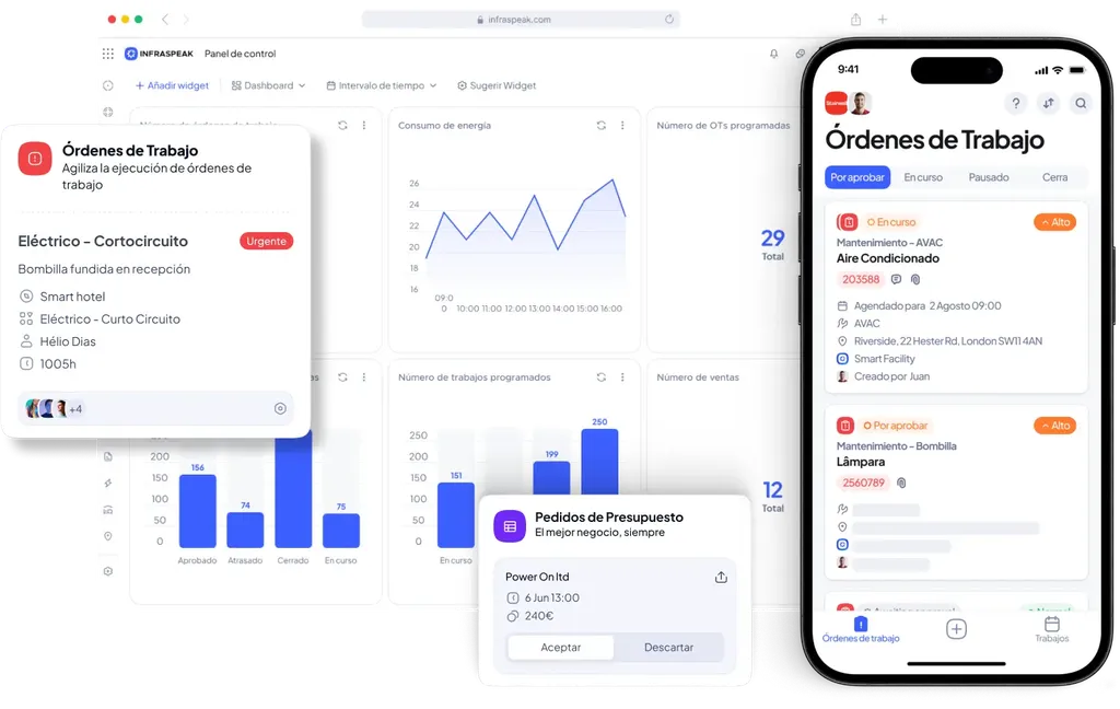 Es Infraspeak. ¿Así que Luís se ha quedado sin filtros de carbón e Isabel lleva pendiente la solicitud de tóner para la impresora desde el mes pasado? Elimina las costosas roturas de stock que afectan al trabajo y mejora el proceso de compra de piezas y materiales con nuestro sistema de gestión de inventario.