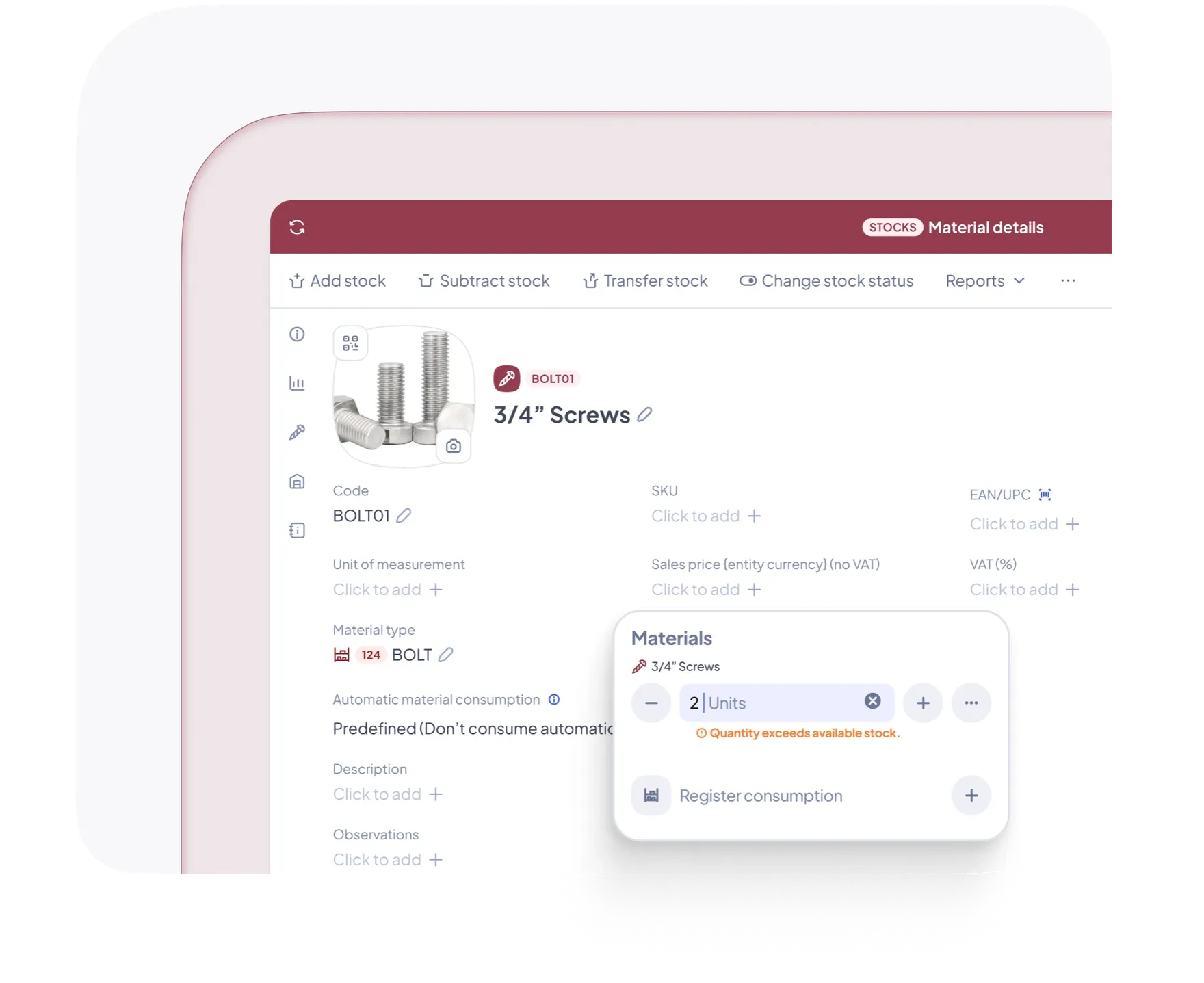 Suivi précis de l’utilisation des stocks dans les tâches de maintenance.