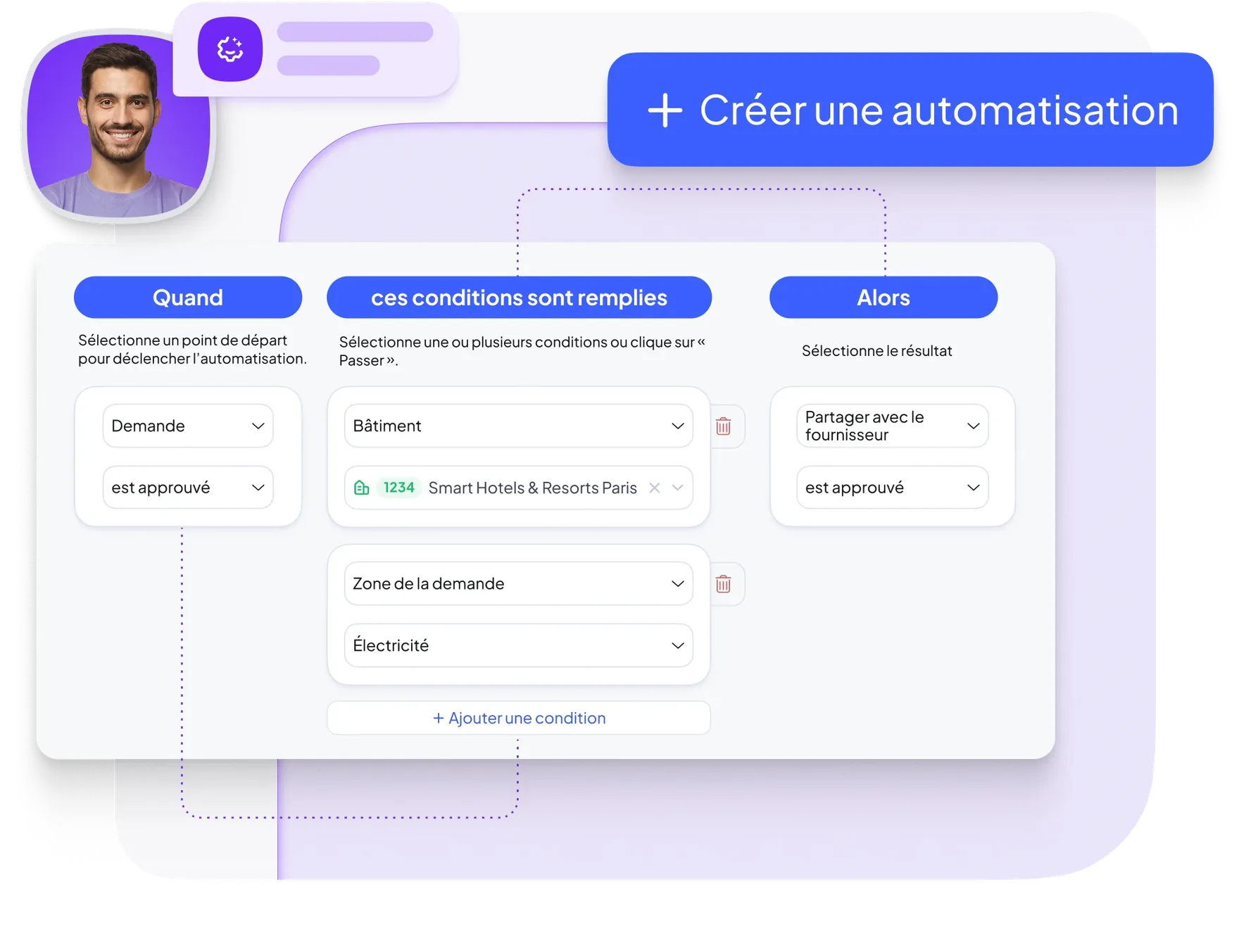 Attribution automatique des bons de travail au bon technicien selon le type d’actif et les compétences.